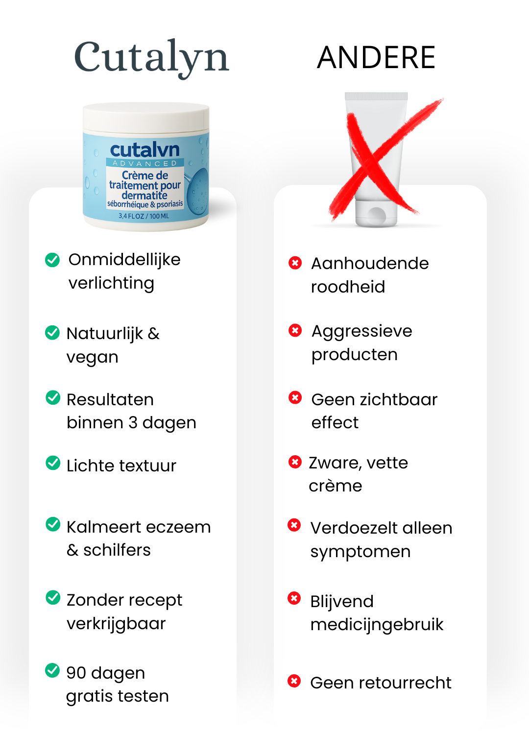 👉 Als Cutalyn je roodheid niet verzacht of gewoon niet bij je past, betalen wij je volledig terug.